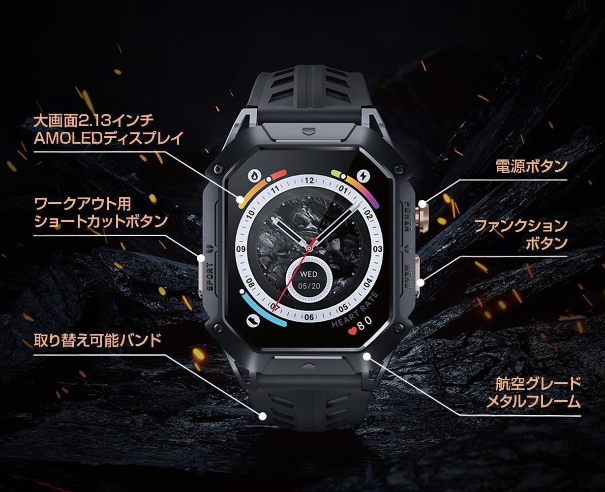 本製品は、過酷な環境下でも頼れる耐久性と、100日間スタンバイ可能な超ロングバッテリーを搭載したハイエンドモデルです。2.13インチAMOLEDディスプレイで高い視認性を確保し、アウトドア愛好家やプロフェッショナルのための最強の相棒となるスマートウォッチです。
